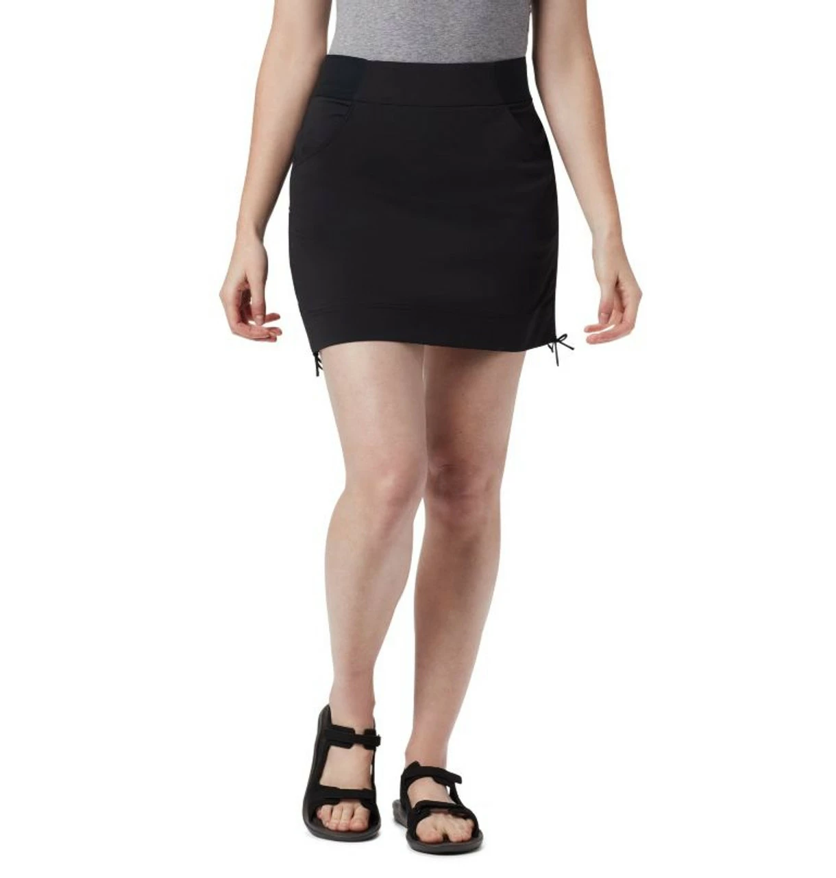This mid-rise skort delivers rain-and-stain repellency and UPF 50 sun protection for fair-weather adventures.