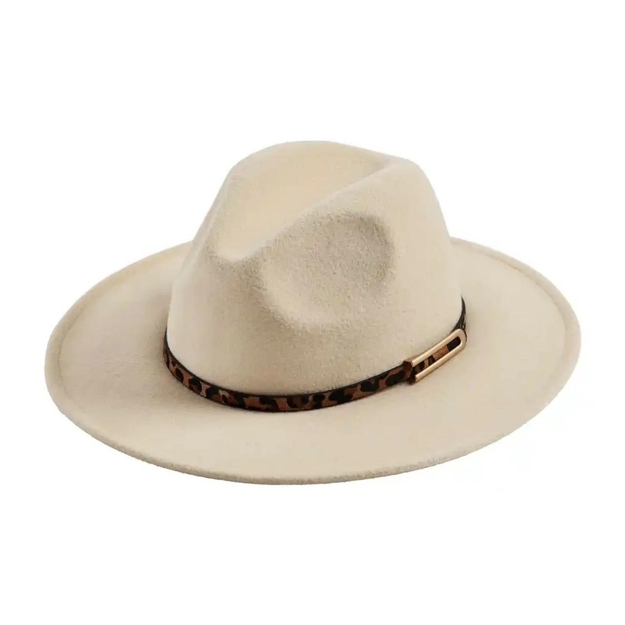 Top off your favorite outfit with our black fedora with leopard band. The poly felt black fedora features a leopard band. The leopard band features gold metal hardware. The hat’s interior has an adjustable feature to make sure the hat fits just right on your head. This hat is one size fits most.