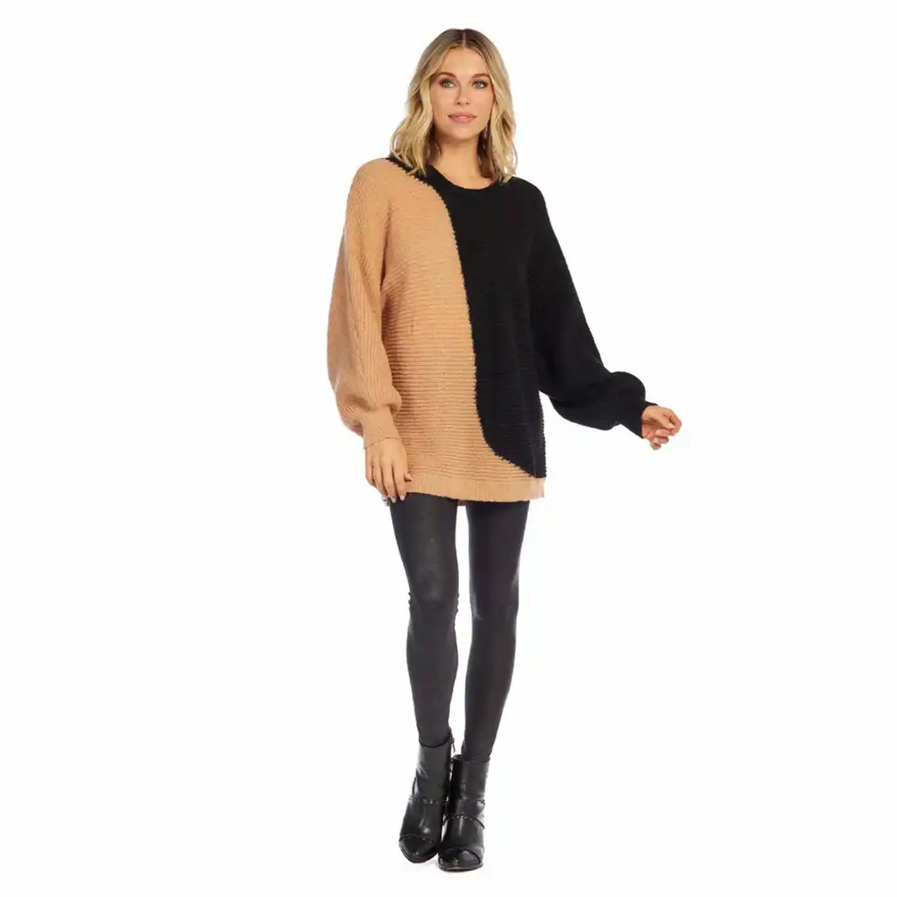 Fall dog walking and coffee runs just got more cozy with our Maple Black Oversized Sweater. The soft chunky sweater features oversized relaxed fit. The sweater has color-block details and dolman sleeves. The sweater measures approximately 26″ from shoulder to hem on size small.