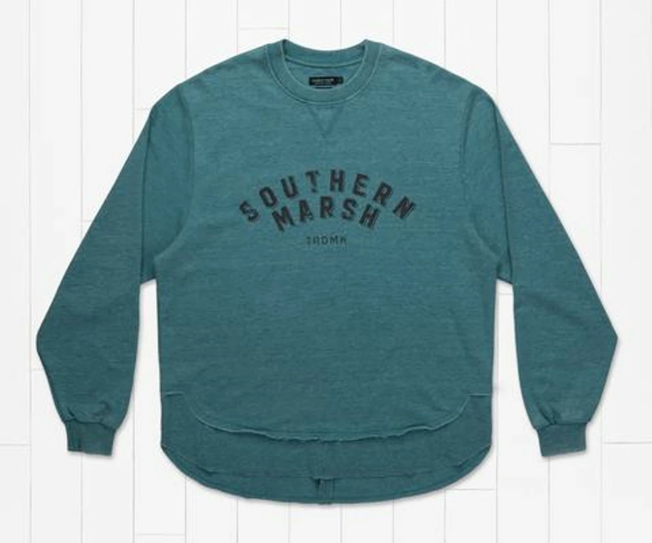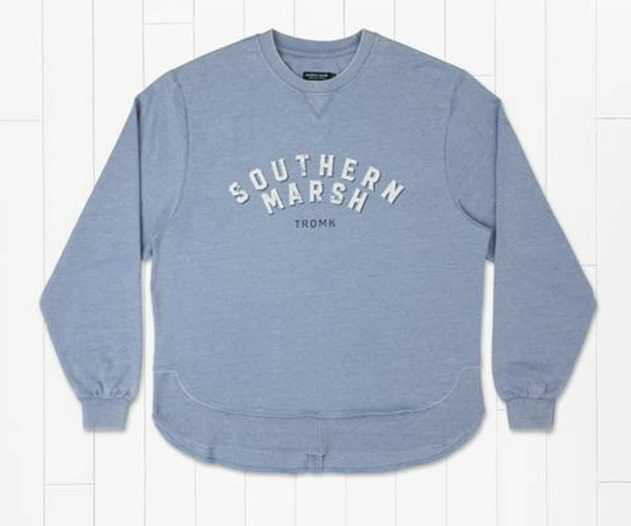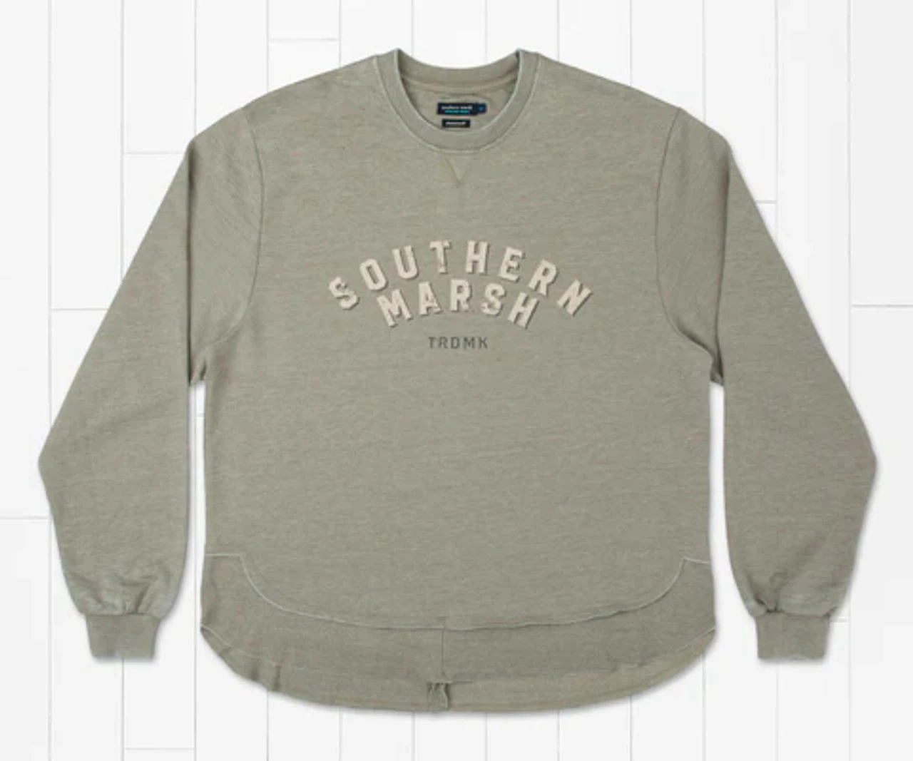 Explore the womenβs fit version of our best-selling crewneck, the SEAWASHβ’ Rally Round Bottom Sweatshirt! Made with a poly-cotton blend, it’s soft to the touch and makes the perfect layering piece on chilly days. The rounded bottom creates a flattering and feminine fit, while the ribbed sleeves and collar stretch to keep you comfortable. With a raw bottom hemline and our bold Southern Marsh print across the chest, this sweatshirt will add a rustic touch to every outfit.