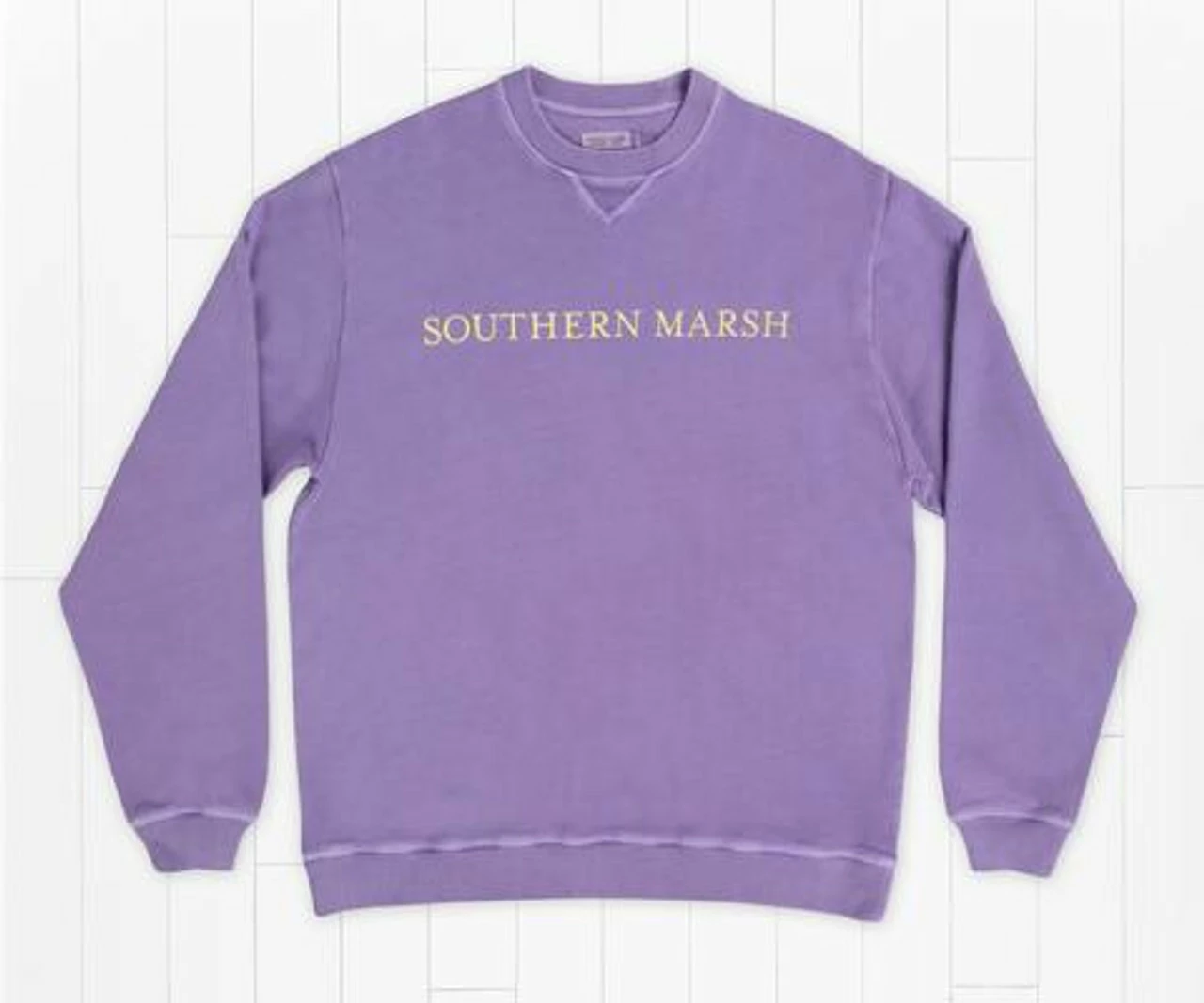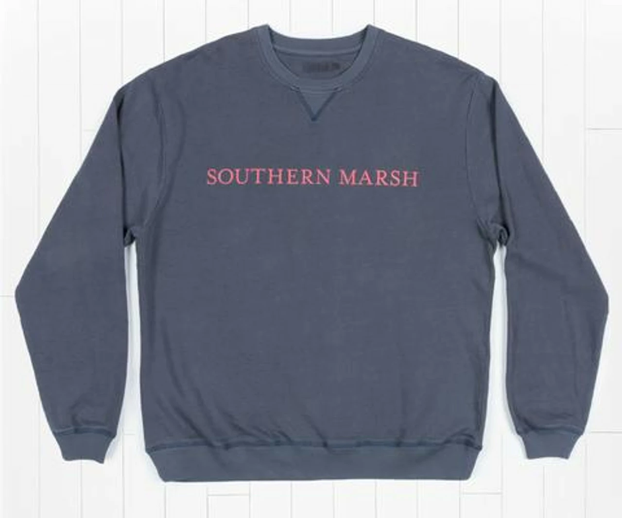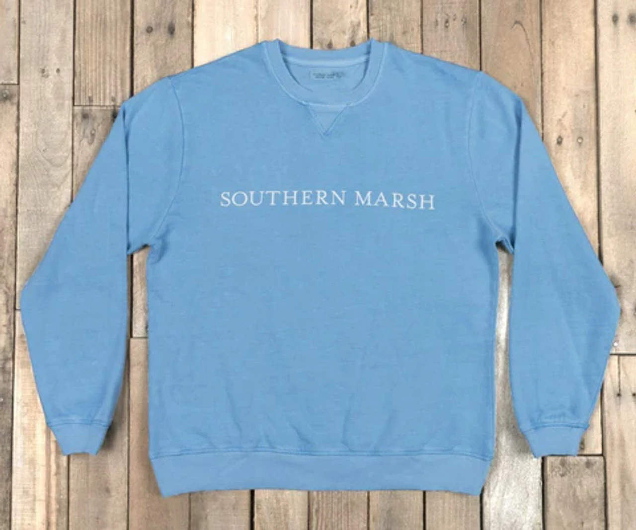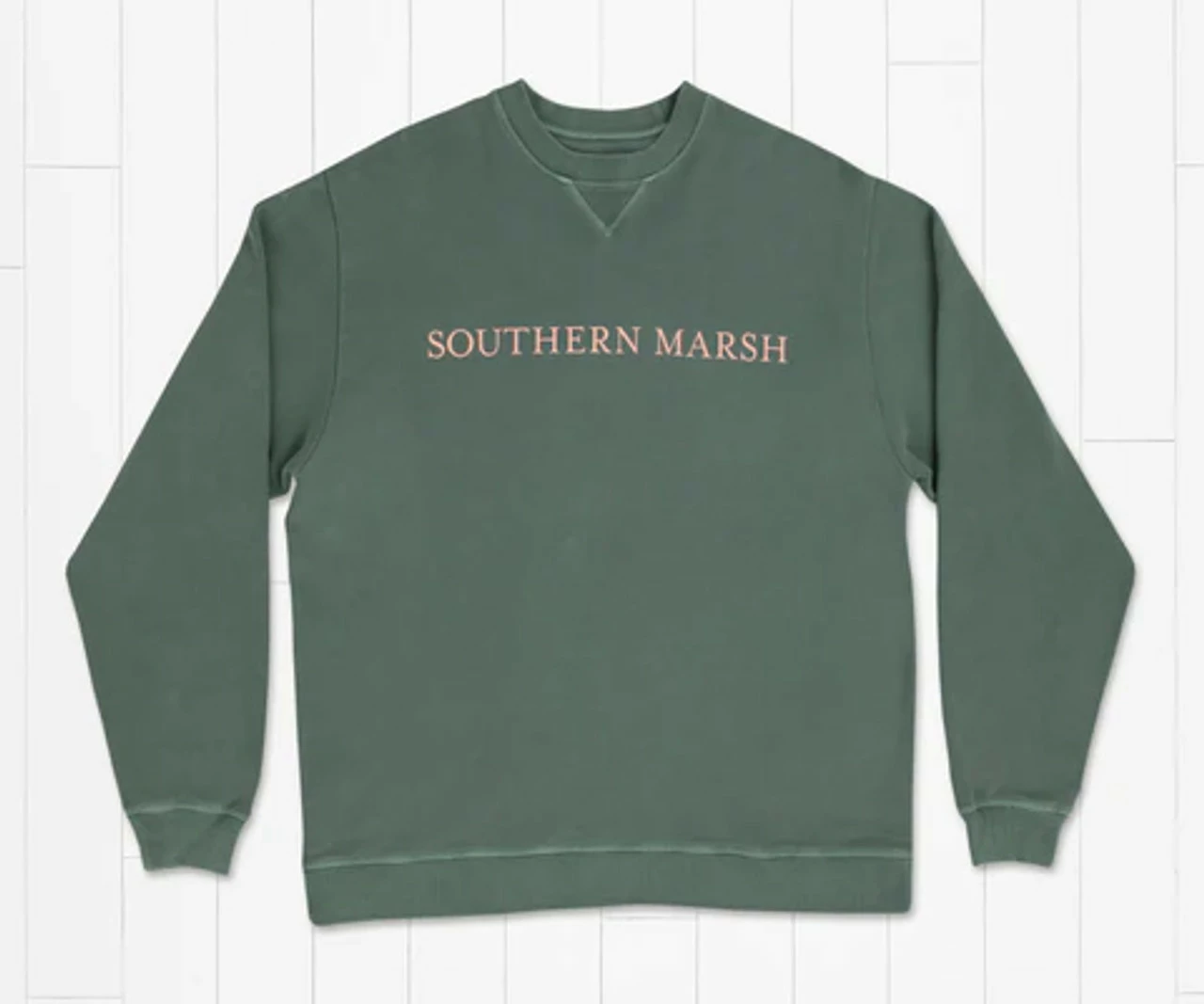 Our custom SEAWASHβ’ colors are now available in the comfiest sweatshirt youβll ever throw on. Made with 100% cotton, the softness of this terry crewneck sweatshirtΒ will keep you comfortable and warm.Β A must-have for those cool nights out on the beach with friends, or anytime you have a little chill. Finished with custom Southern Marsh lettering and an embroidered duck on the back collar.